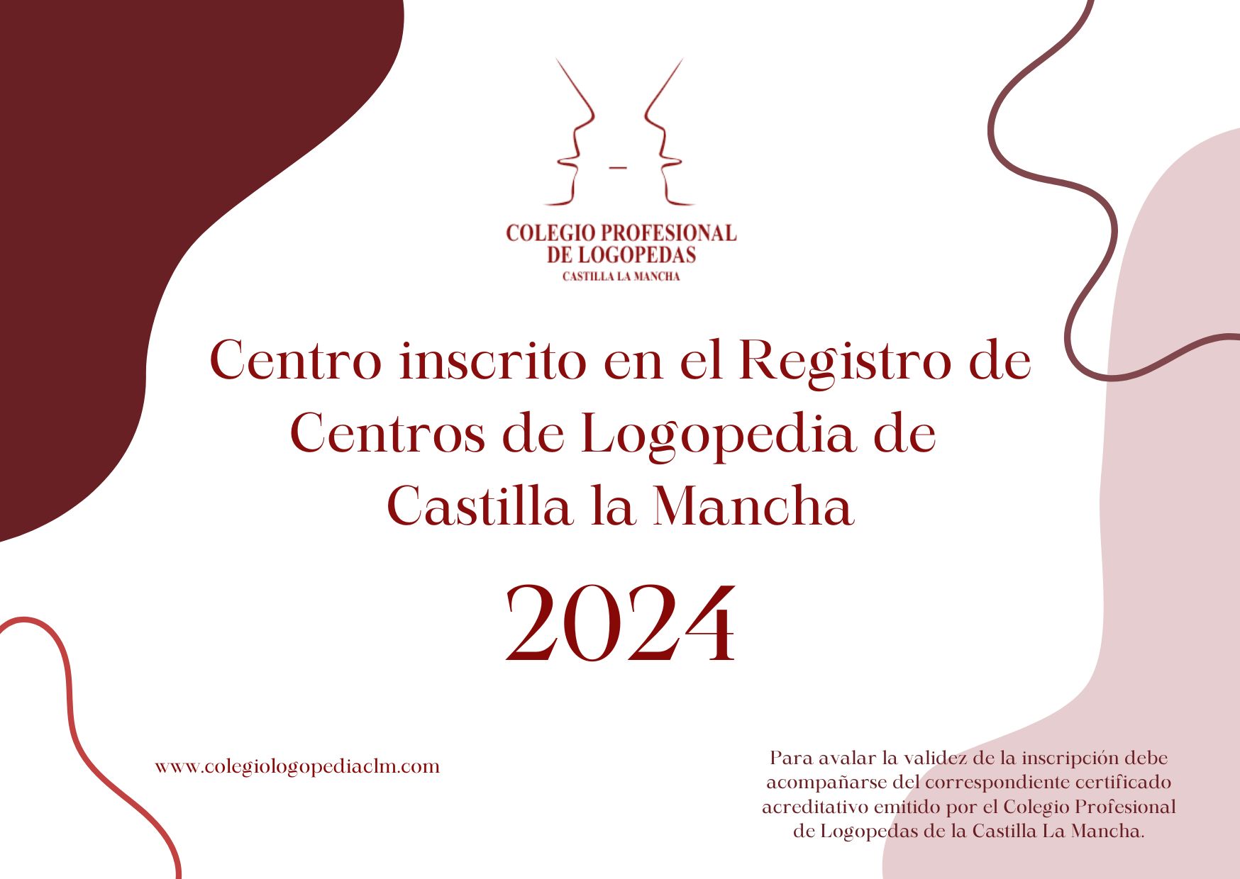 Contamos con nuestro distintivo del Registro de Centros de Logopedia de Castilla La Mancha que nos acredita como centro registrado que cuenta con profesionales titulados y colegiados según exige la normativa en nuestra Comunidad Autónoma.